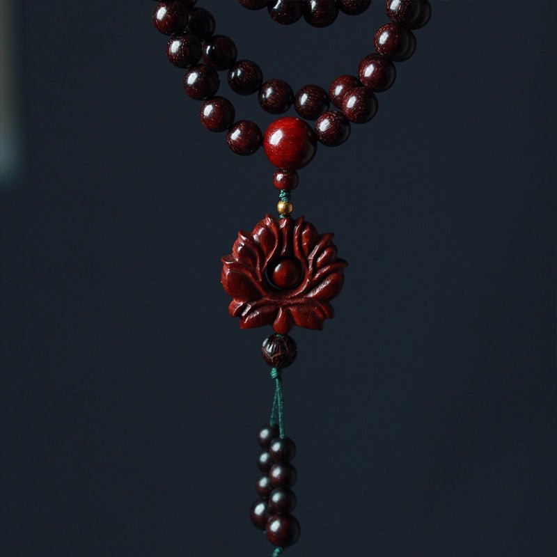 Tibetan Small Leaf Red Sandalwood Lotus Mala Balance Bracelet
